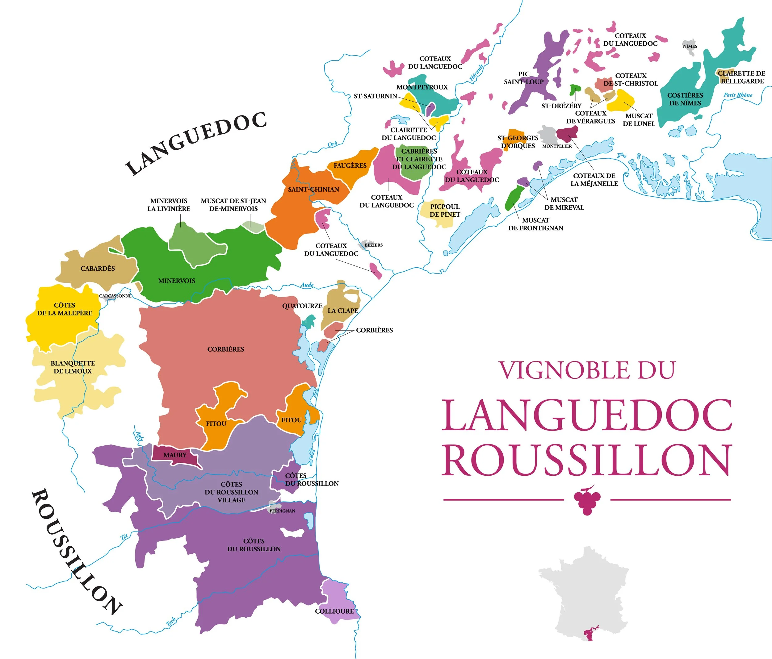 Together the Languedoc (90%) and Roussillon (10%) make up the Occitanie region of France that stretches from Spain to Provence along the Mediterranean.