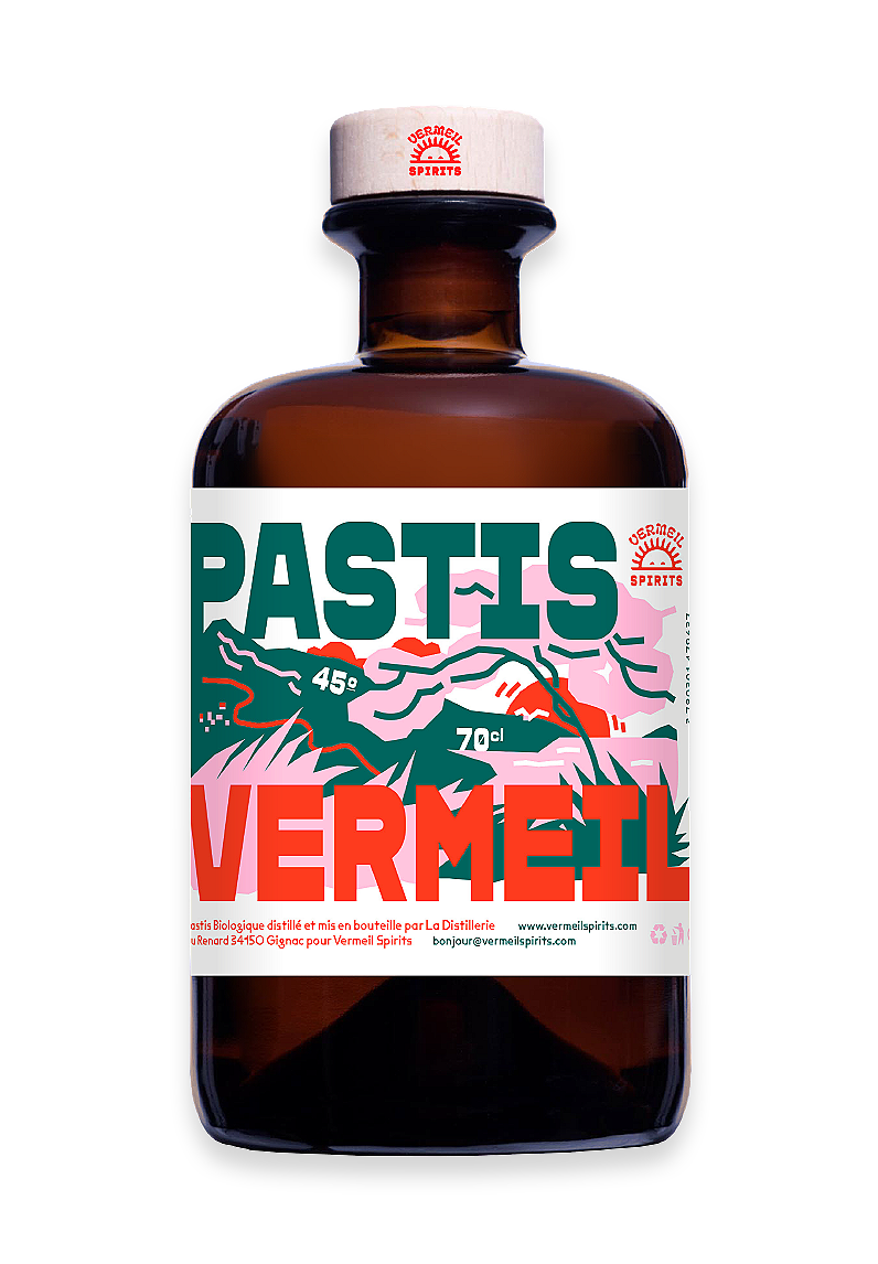 Pastis Vermeil is an artisan pastis distilled from locally sourced organic wine base and a vibrant ensemble of plants and spices such as star anise, wild fennel, cardamom and verbena. This is a top-shelf take on the classic French anise apéritif – drink with water to open up its aromatic richness.