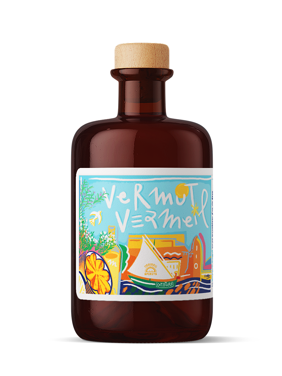 Vermouth Vermeil is built on an organic wine base of Roussillon vin doux naturel. It is infused with a dozen carefully selected organic botanicals, spices and fruit, including bitter orange, gentian and juniper. The result is an aperitif wine that balances gentle sweetness with herbal complexity – perfect over ice or as the heart of classic cocktails.